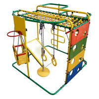 | Комплектация | тарзанка, веревочная лестница, качели, сетка для лазания, панель с отверстиями, горка, баскетбольное кольцо, мольберт со счетами, гимнастические кольца |