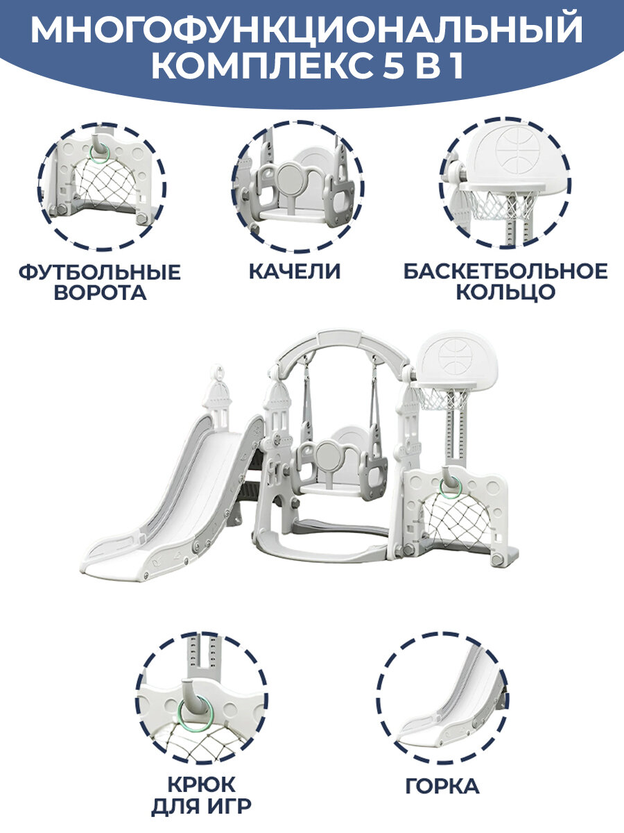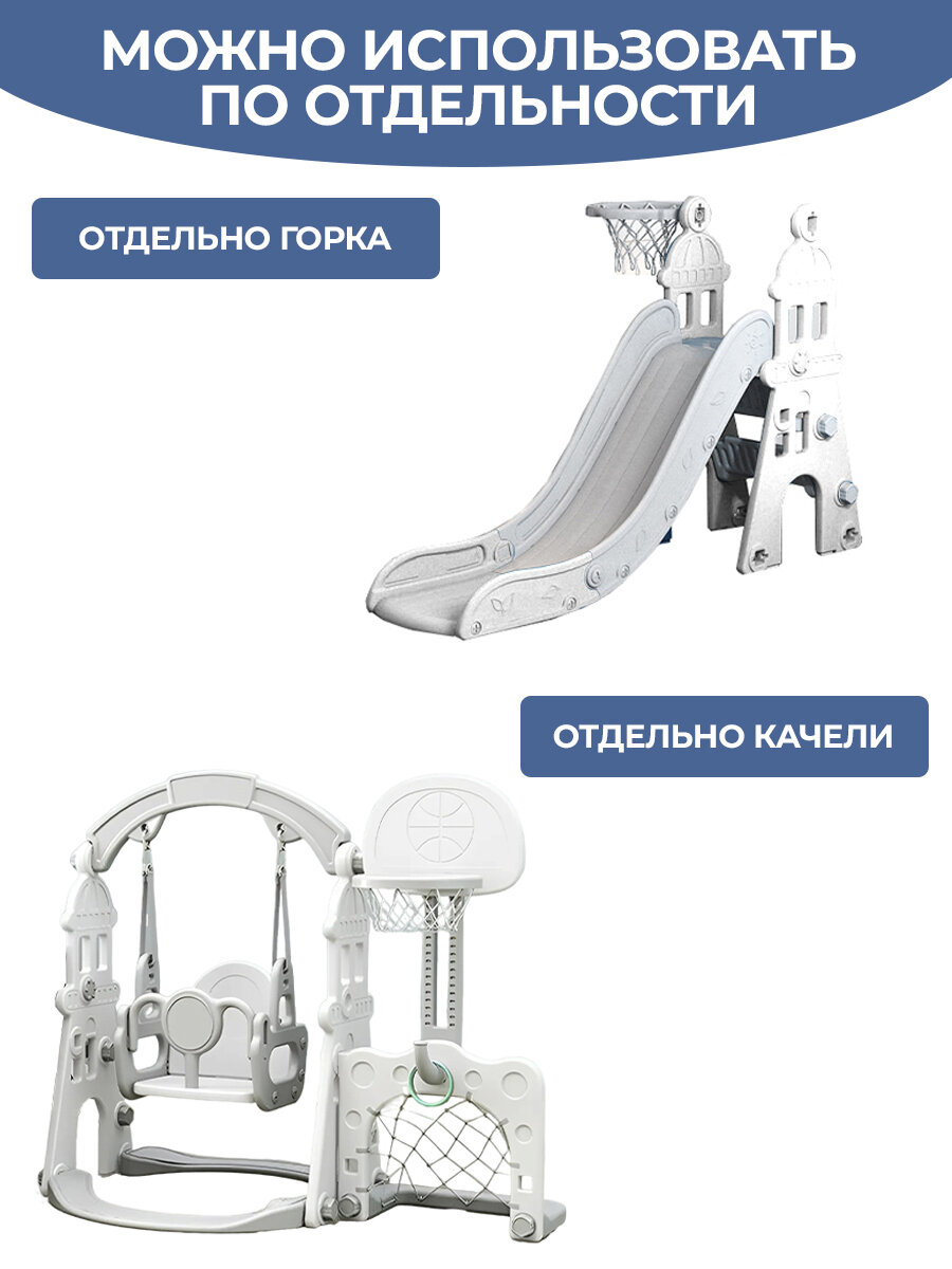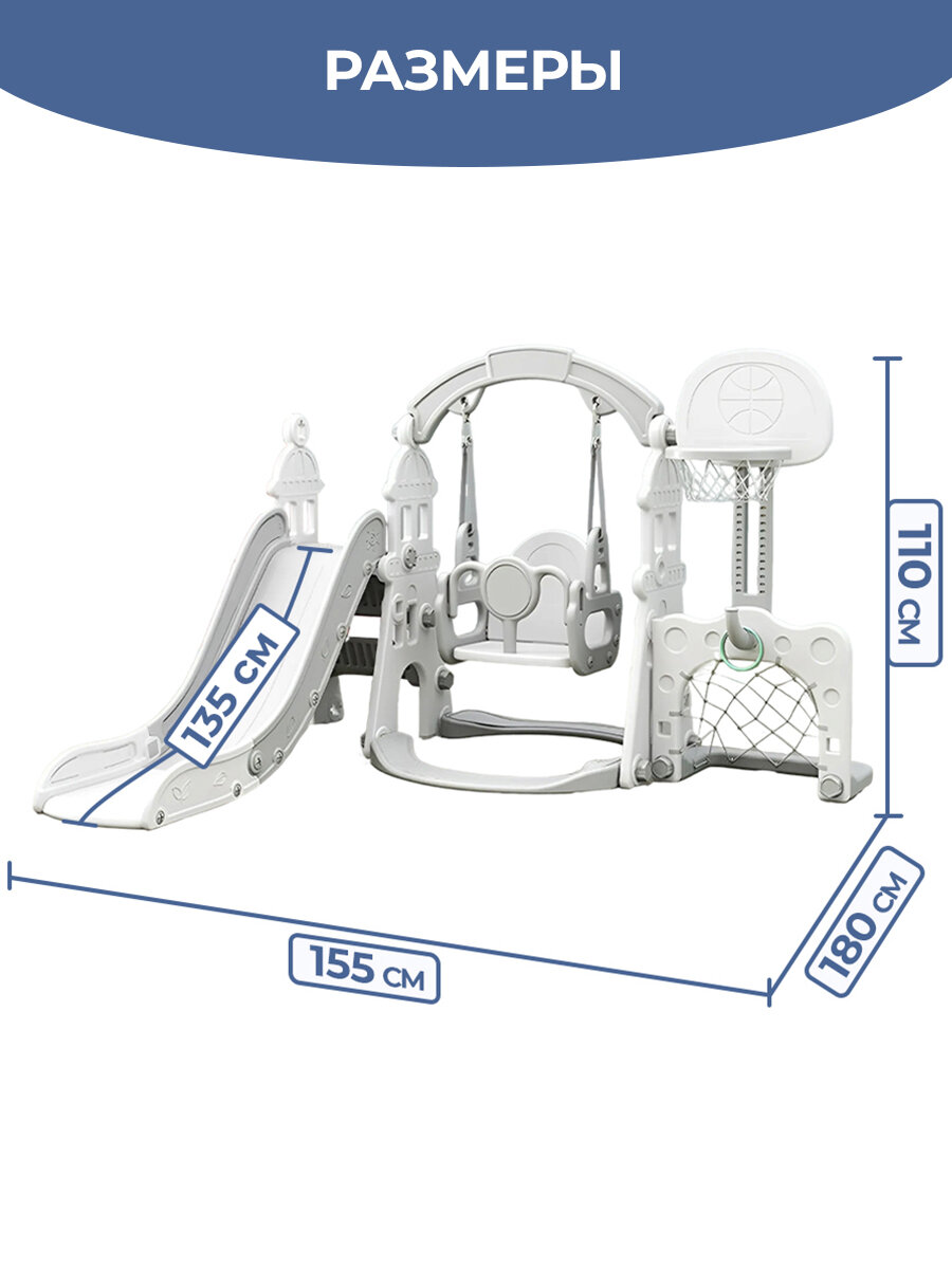 Спортивно-игровой комплекс LESTI Замок, горка, качели, баскетбольное кольцо, футбольные ворота, белый; серый: сравнение цен, характеристики, фото, актуальное наличие и цены.