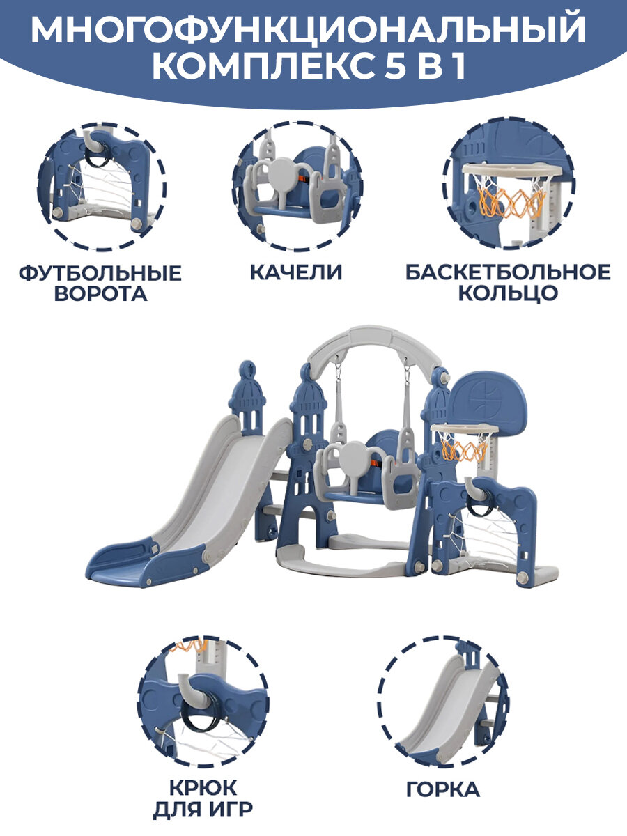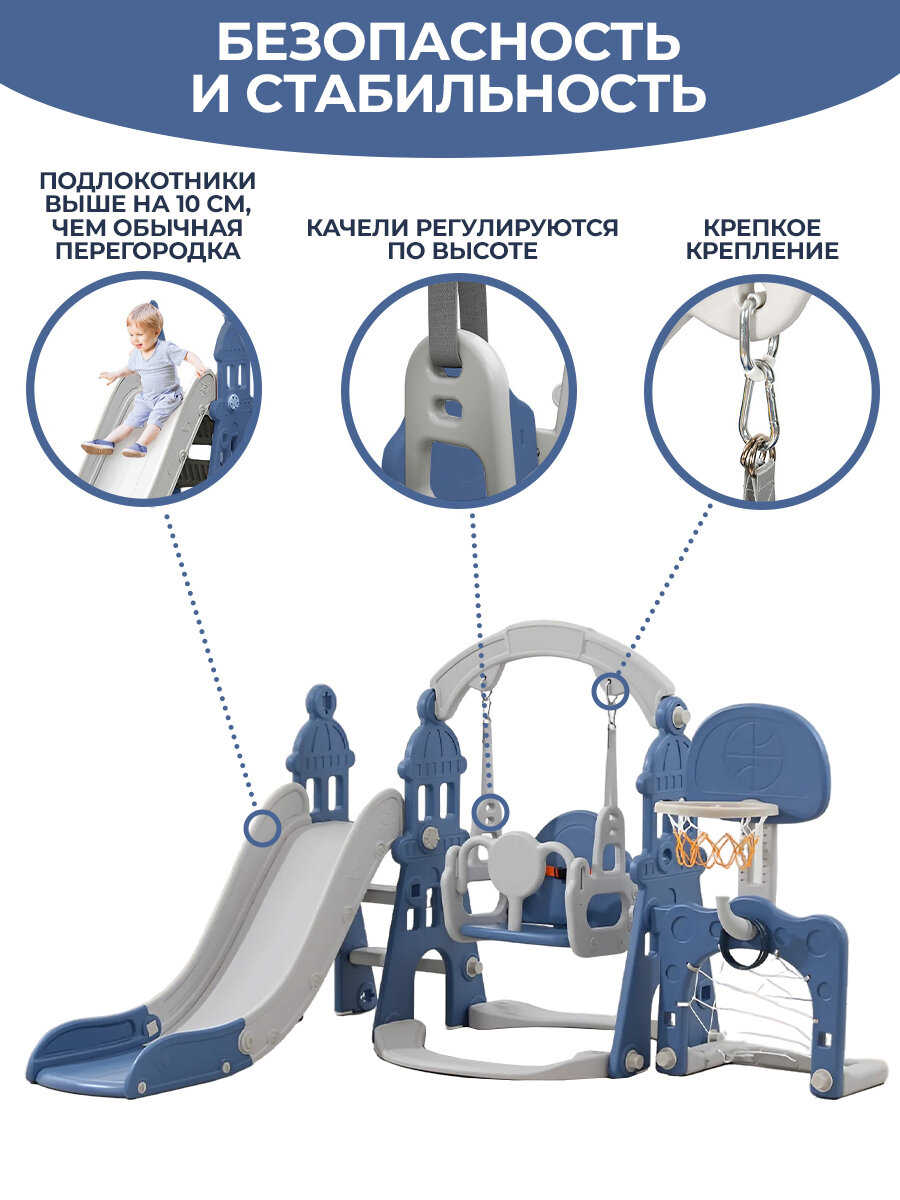 Спортивно-игровой комплекс LESTI Замок, горка, качели, баскетбольное кольцо, футбольные ворота, синий; серый: сравнение цен, характеристики, фото, актуальное наличие и цены.