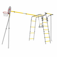 | Комплектация комплекса | баскетбольное кольцо, гимнастические кольца, канат, канатный лаз, качели, лестница, рукоход, сетка для лазания, трапеция с кольцами, турник |