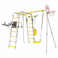 | Комплектация комплекса | баскетбольное кольцо, боксерская груша, брусья, гимнастические кольца, канат, качели, лестница, рукоход, турник |
