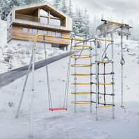 Комплектация комплекса включает в себя канат, гимнастические кольца, веревочный лаз, кольцевой лаз, турник неподвижный и качели фанерные. Допустимая нагрузка на турник составляет 100 кг, на навесное оборудование - 50 кг, а на качели - 100 кг.