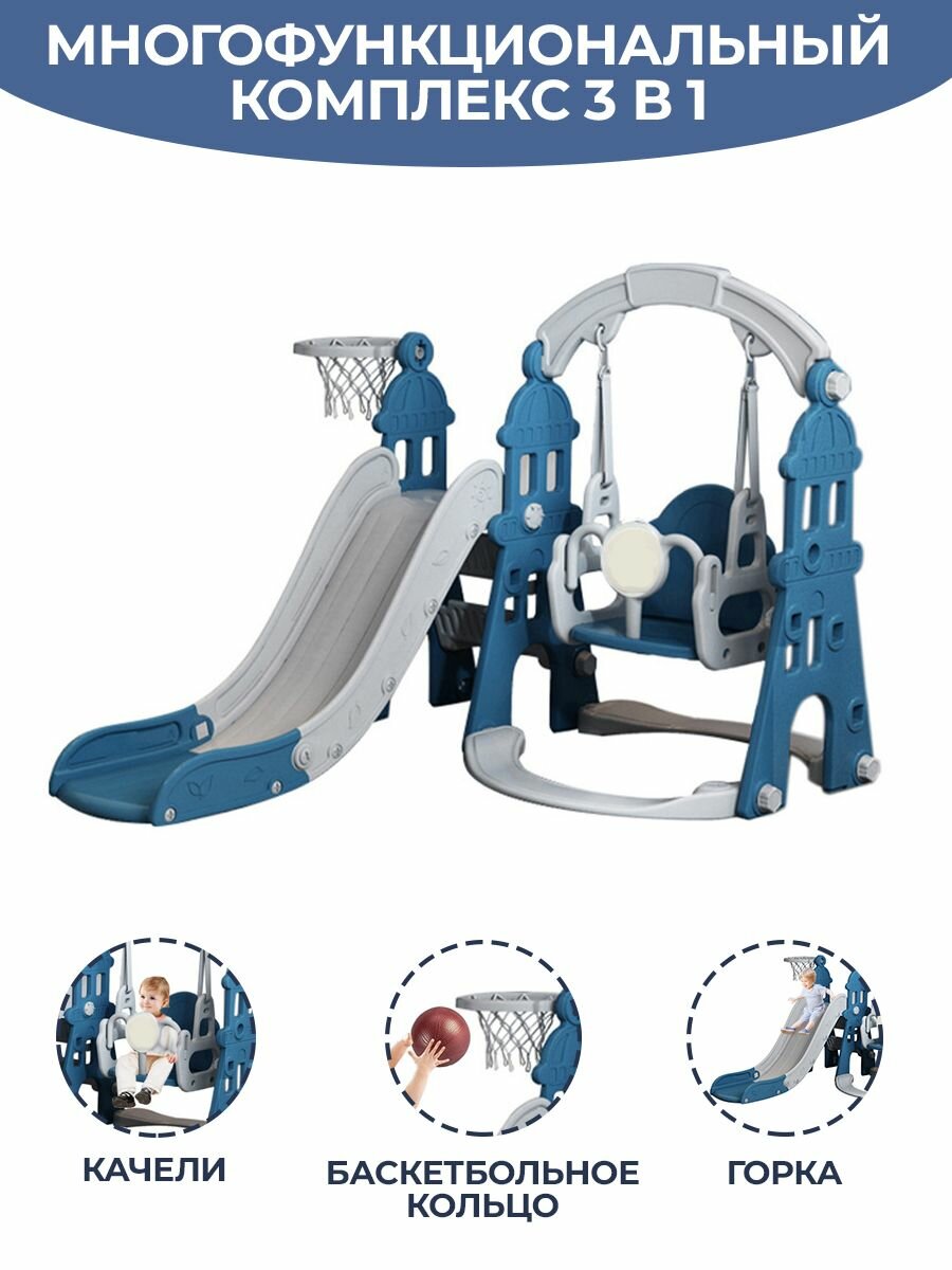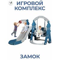 Купить Спортивно-игровой комплекс LESTI Замок, горка, качели, баскетбольное кольцо для дома и улицы, синий; серый; белый с доставкой по всей России.
