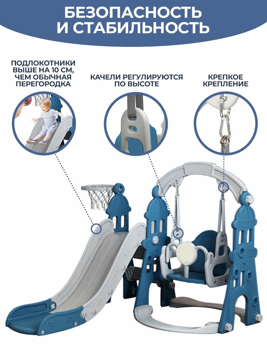Спортивно-игровой комплекс LESTI Замок, горка, качели, баскетбольное кольцо для дома и улицы, синий; серый; белый: сравнение цен, характеристики, фото, актуальное наличие и цены.