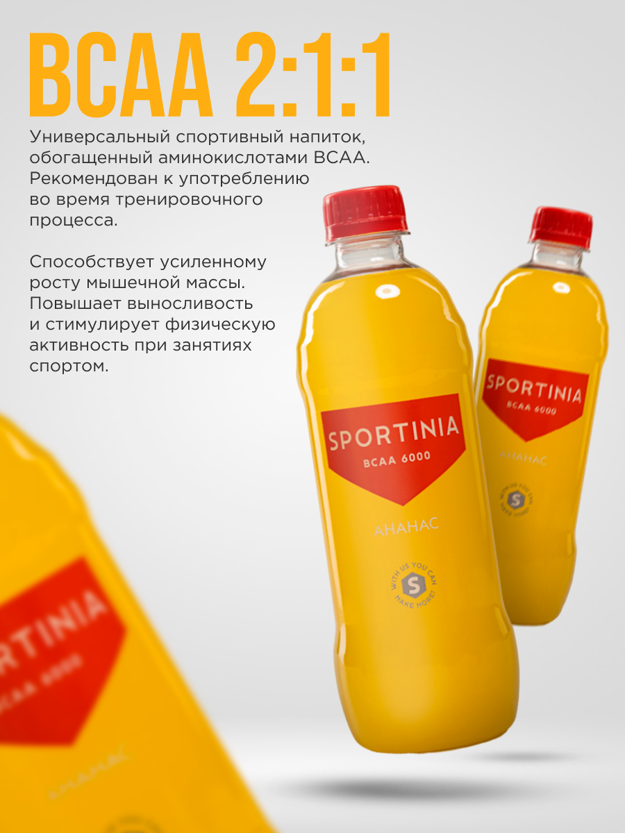 Купить Sportinia BCAA 6000 (аминокислоты) Ананас (желтый) 0,5л./12шт. Спортиния с доставкой по всей России. Sportinia BCAA 6000 (аминокислоты) Ананас (желтый) 0,5л./12шт. Спортиния: сравнение цен, характеристики, фото, актуальное наличие и цены.