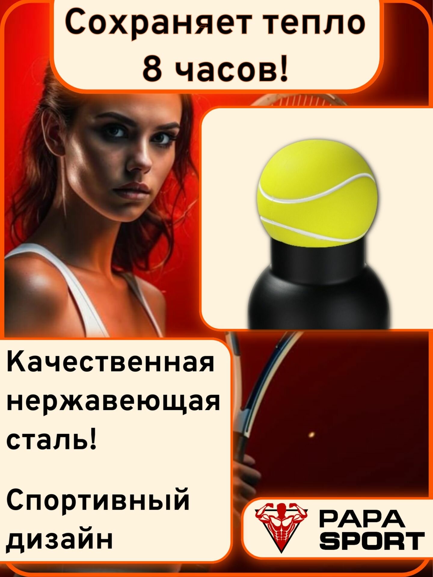 Спортивный термос «Теннис», 500 мл, сохраняет тепло 8 часов, нержавеющая сталь: сравнение цен, характеристики, фото, актуальное наличие и цены.