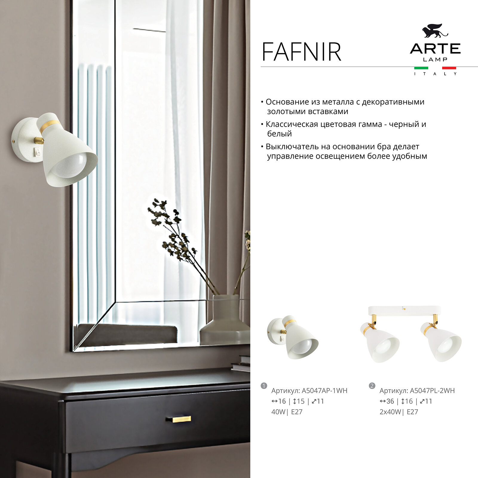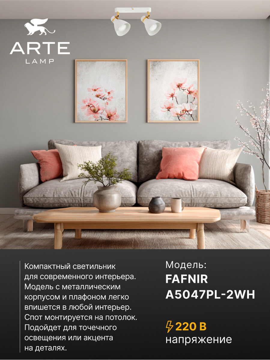 Спот накладной Arte Lamp FAFNIR A5047PL-2WH, E27 40 Вт белый: сравнение цен, характеристики, фото, актуальное наличие и цены.