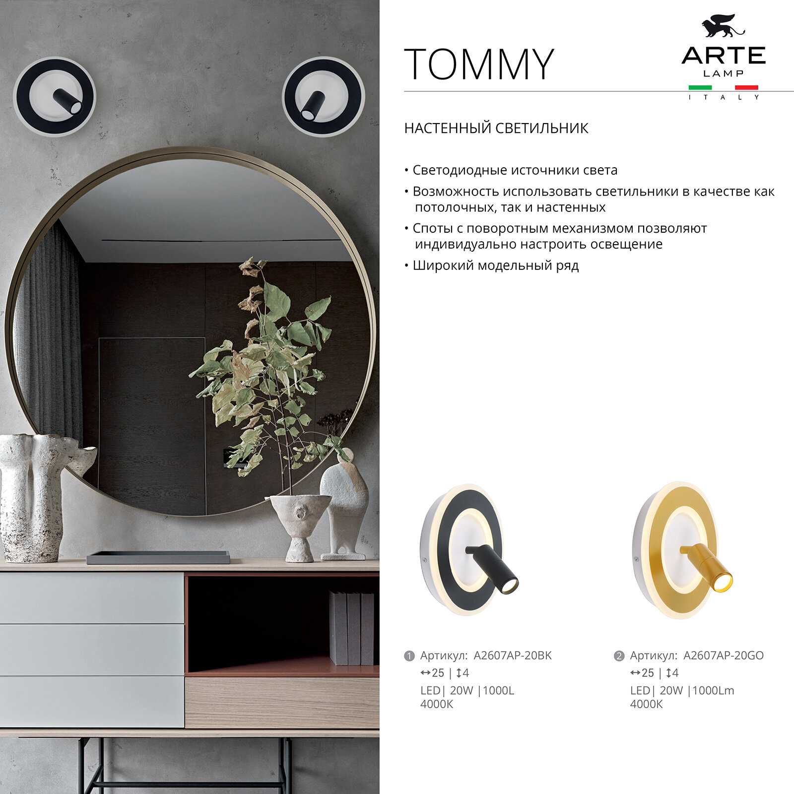 Спот накладной Arte Lamp TOMMY A2607AP-20GO LED 20 Вт золотистый: сравнение цен, характеристики, фото, актуальное наличие и цены.