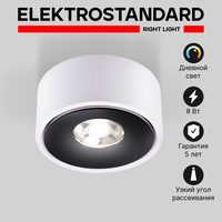 Накладной потолочный светильник Elektrostandard 25100/LED в белом/черном цвете создаст качественное освещение, а эргономичные и легкие формы станут отличным дополнением вашего интерьера. Накладные LED светильники нашли свое применение на кухне, в коридоре, в гостиной и в помещениях, где необходима функциональная подсветка. Встроенные яркие COB светодиоды мощностью 8 Вт образуют световой поток 650 лм и имеют комфортную цветовую температуру 4200 К. В производстве светодиодного накладного светильника использованы высококачественный алюминиевый сплав, акрил и надежное термостойкое окрашивание. Универсальный светильник легко устанавливается на гипсокартонные конструкции, подвесные и натяжные потолки.