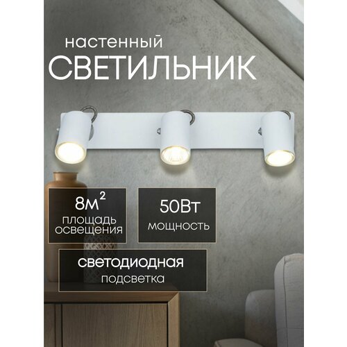 Спот настенный светильник светодиодный белый/хром 3x50W GU10 h105: сравнение цен, характеристики, фото, актуальное наличие и цены.