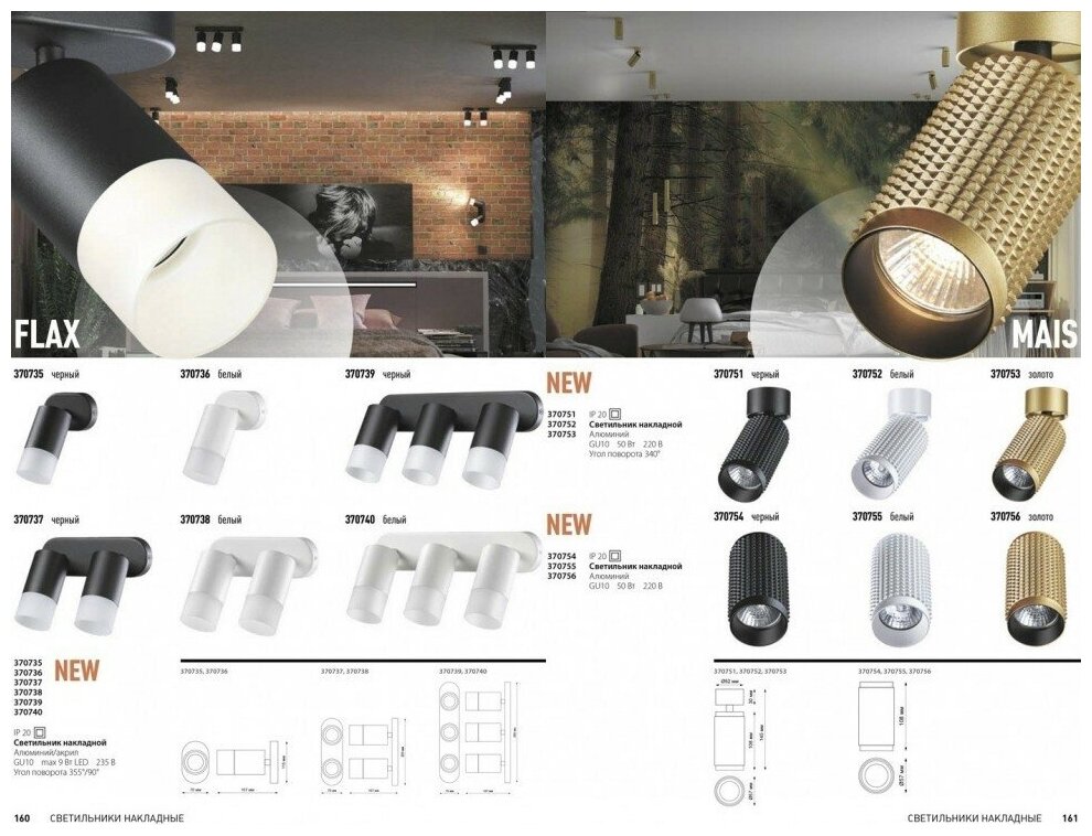 | Направление плафонов | в стороны, вверх, вниз, поворотные |