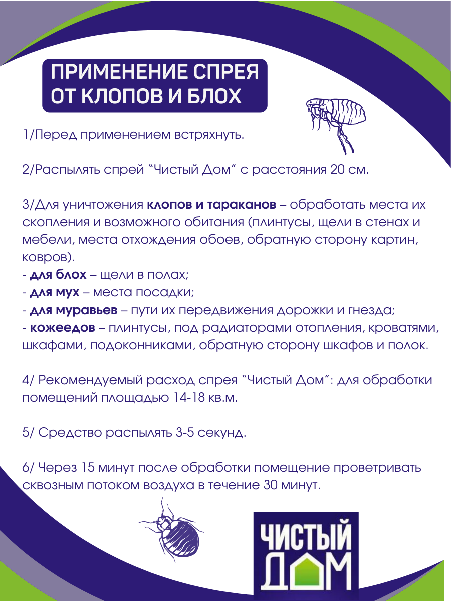 Уничтожает постельных клопов, блох, мух и др. Флакон с курковым распылителем.