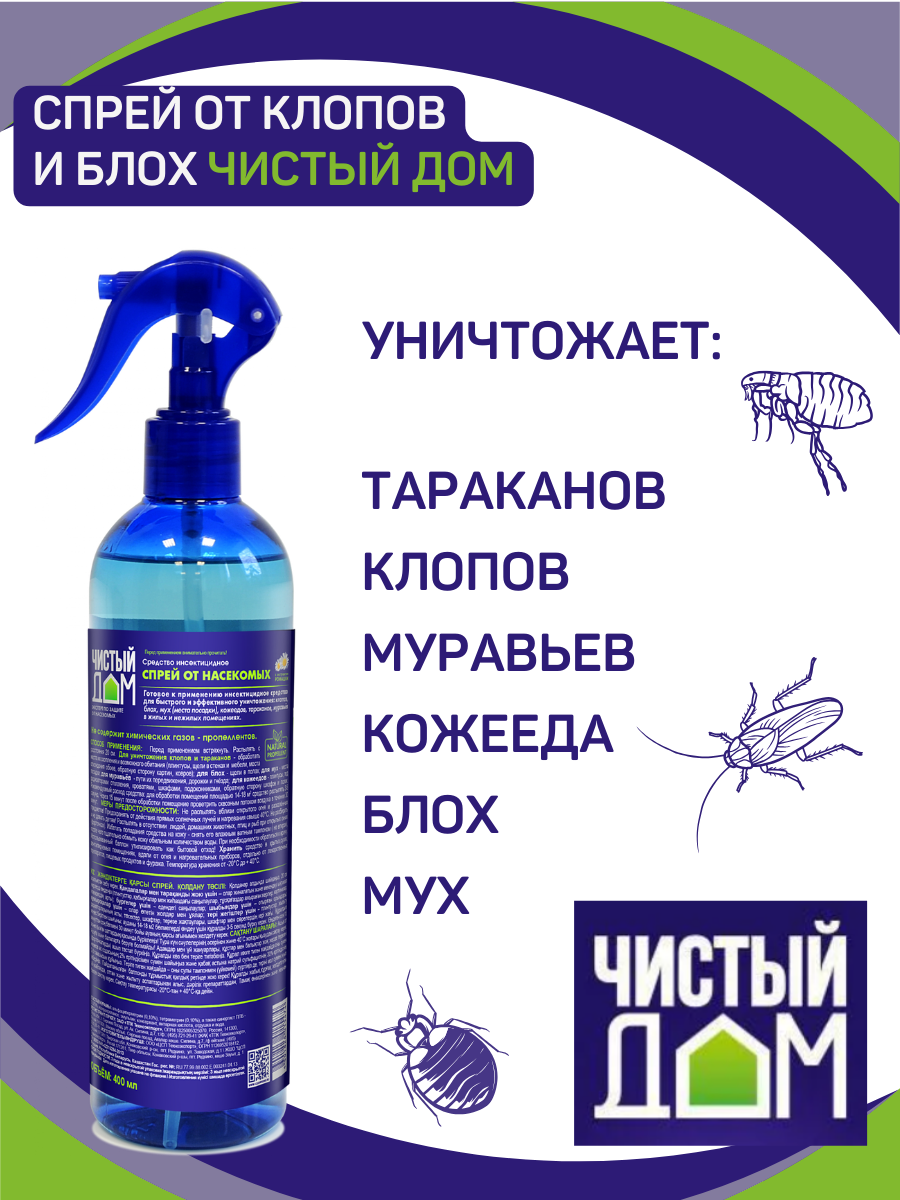Спрей Чистый дом, от клопов и блох, с экстрактом ромашки, 400 мл