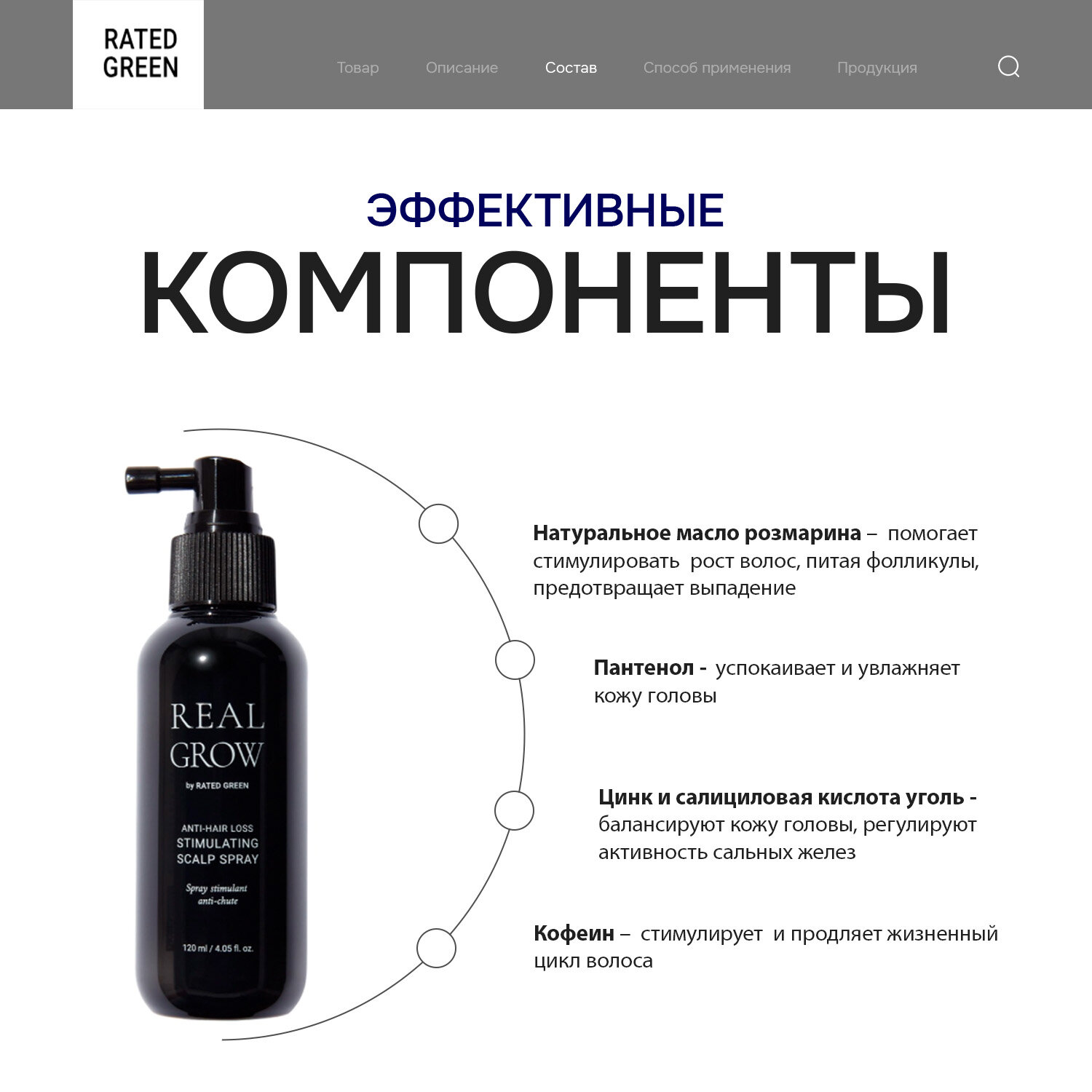 | Комплектация | Спрей для кожи головы против выпадения волос RATED GREEN, 120 мл |