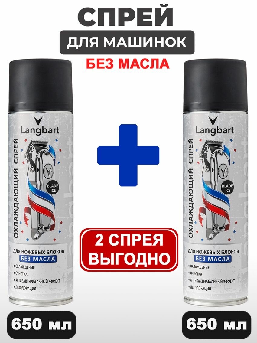 Спрей для охлаждения и очистки ножевых блоков Langbart blade ice — без масла (650 мл) Х 2 шт. — средство для обслуживания ножей машинок для стрижки волос и триммеров. Лангбарт: сравнение цен, характеристики, фото, актуальное наличие и цены.