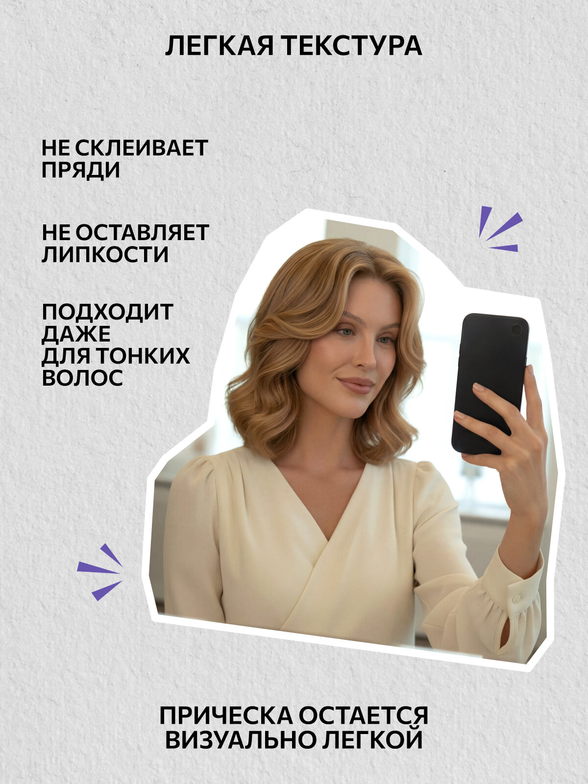 Распылите на чистые, подсушенные полотенцем волосы для придания дополнительного объема и фиксации. Приступайте к укладке.
