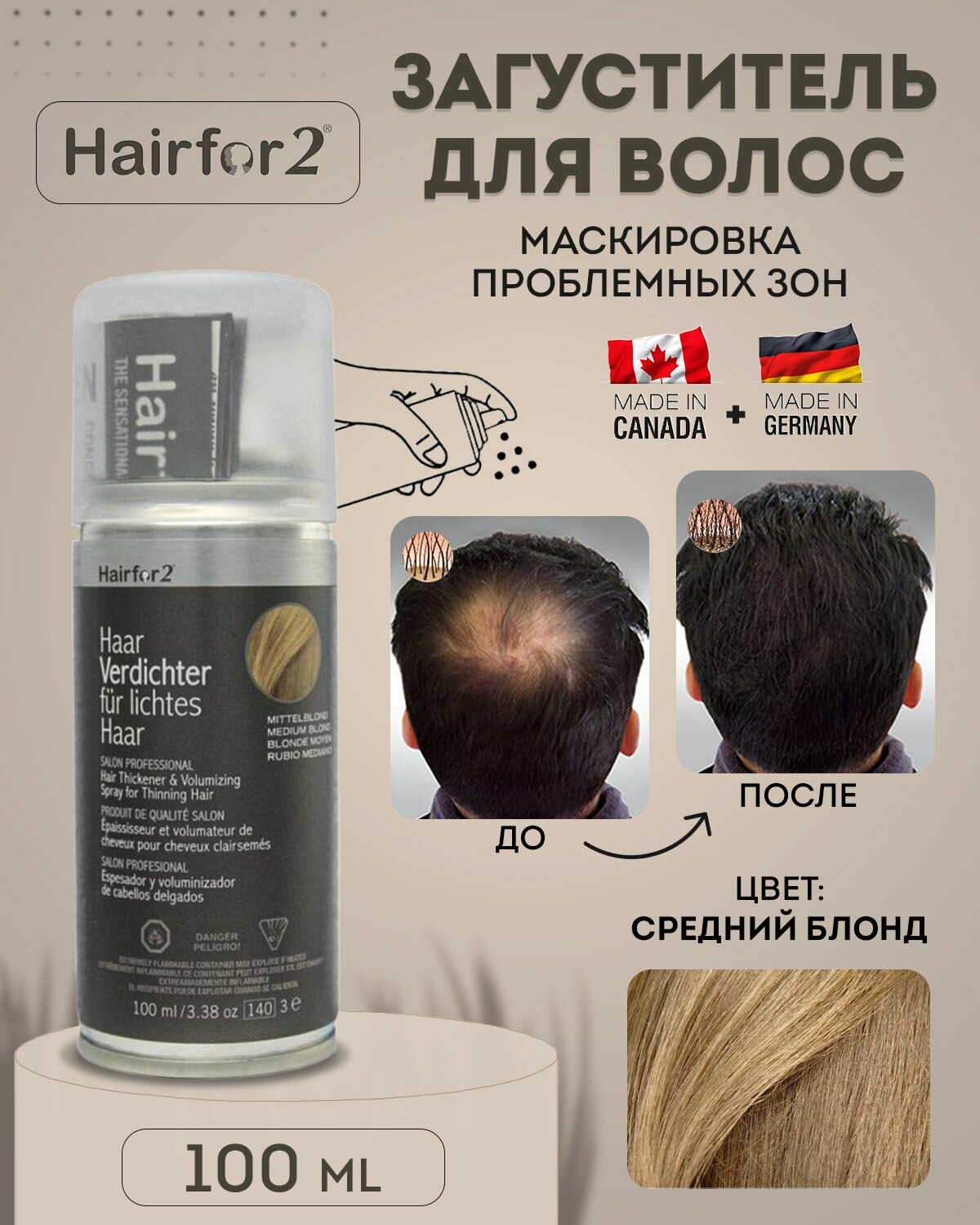 Спрей загуститель для волос, маскирующий спрей для волос, камуфляж Medium Blond 100 мл. HAIRFOR2: сравнение цен, характеристики, фото, актуальное наличие и цены.