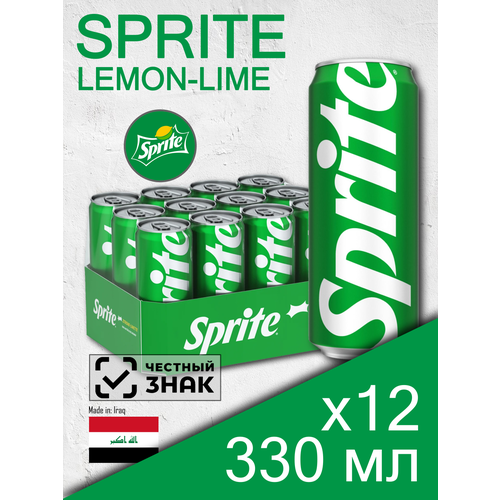 Sprite Lemon-Lime, 0.33 л, алюминиевая банка, 12 шт — газированный напиток Спрайт Лимон-Лайм, производство Ирак.