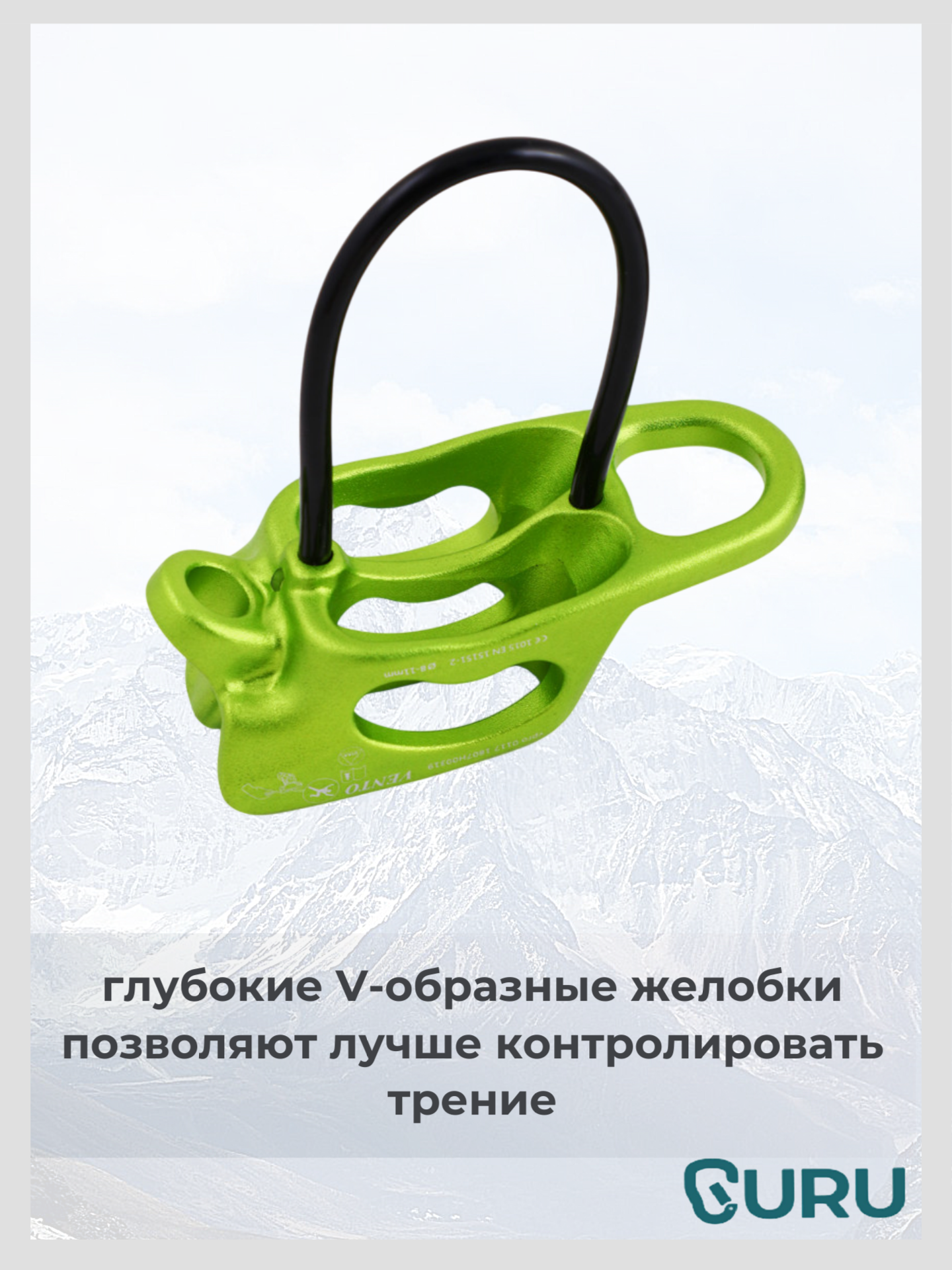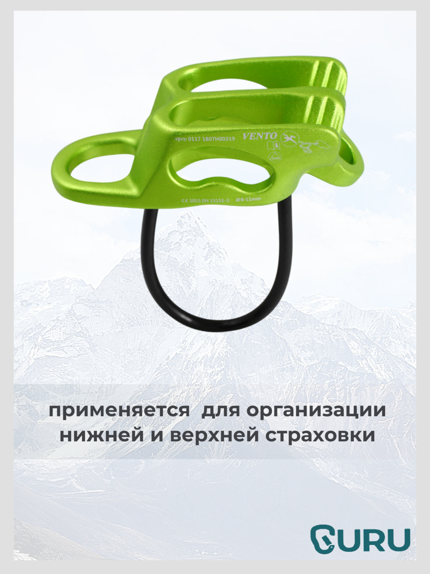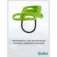 Применяется с динамическими веревками для организации нижней и верхней страховки, а также для сборки полиспастов. Может использоваться как с одной, так и с двумя веревками.