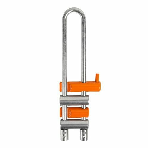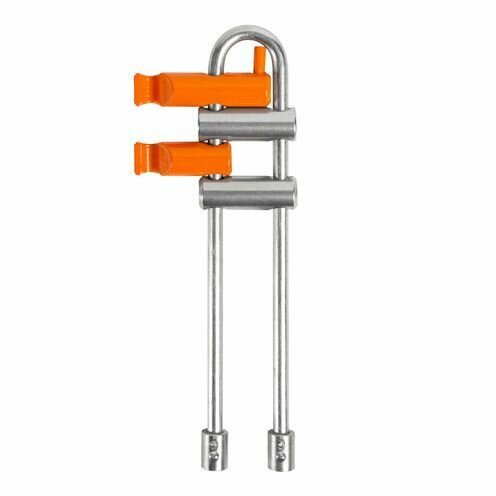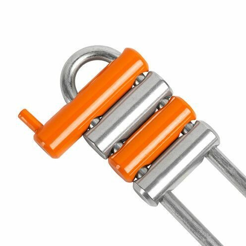 Состоит из стальной U-образной рамки диаметром 8 миллиметров, на которую надеты неподвижные и откидывающиеся бобышки диаметром 20 миллиметров изготовленные из алюминиевого сплава. Высокая теплопроводность (Не пережигает веревку при длительном спуске). Низкий вес устройства. Конструкция устройства позволяет заряжать веревку, не снимая решетку с карабина. Данное спусковое устройство обеспечивает высокую плавность спуска при отсутствии кручения веревки. Вес, г - 358. Мах нагрузка, kN - 10. Сертификация - ГОСТ Р, добровольная