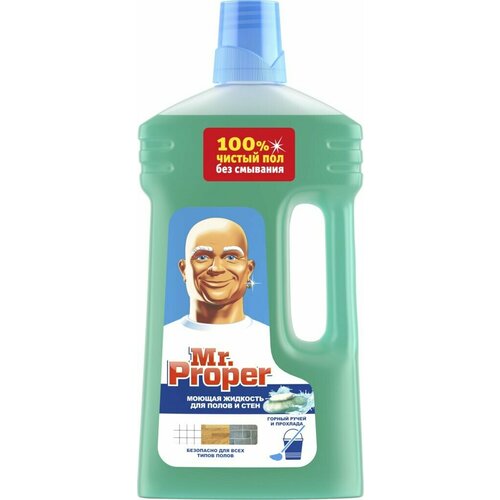Внимание! Товар продается комплектом:[Средство для мытья полов и стен Mr.Proper "Горный ручей и прохлада", 1л] X 4 шт. Mr. Proper Горный Ручей и Прохлада отмывает полы и стены за меньшее время и с меньшими усилиями, а его безвредная рН формула подходит для уборки различных поверхностей, включая лакированный паркет и ламинат. Обладает приятным ароматом от Ambi Purи наполняет дом натуральной свежестью. Придает блеск и не оставляет разводов. Уборка быстрее, чем при использовании воды со стиральным порошком, потому что Mr. Proper не нужно смывать. Можно использовать как в разбавленной, так и в чистой форме. Химический состав:5% нпав, консерванты, ароматизирующие добавки, цитраль, цитронеллол, гераниол, гексилкоричный альдегид, лимонен, линалоол