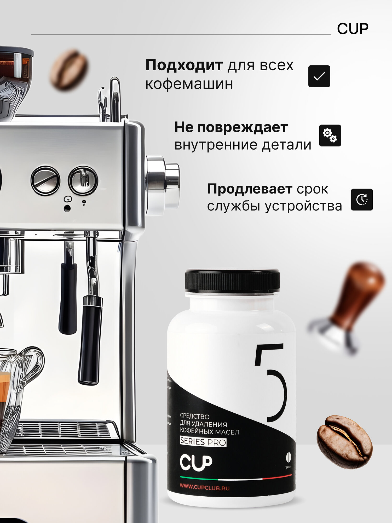 Профессиональное чистящее средство CUP 5 для кофемашин представляет собой эффективное решение для удаления кофейных масел, известкового налета, запахов и остатков кофе. В упаковке 100 таблеток, что обеспечивает долгосрочное использование.