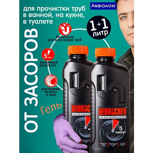 Средство от засоров для прочистки труб и устранения сложных засоров гель «5 минут» дебошир Aqualon, комплект 2 шт