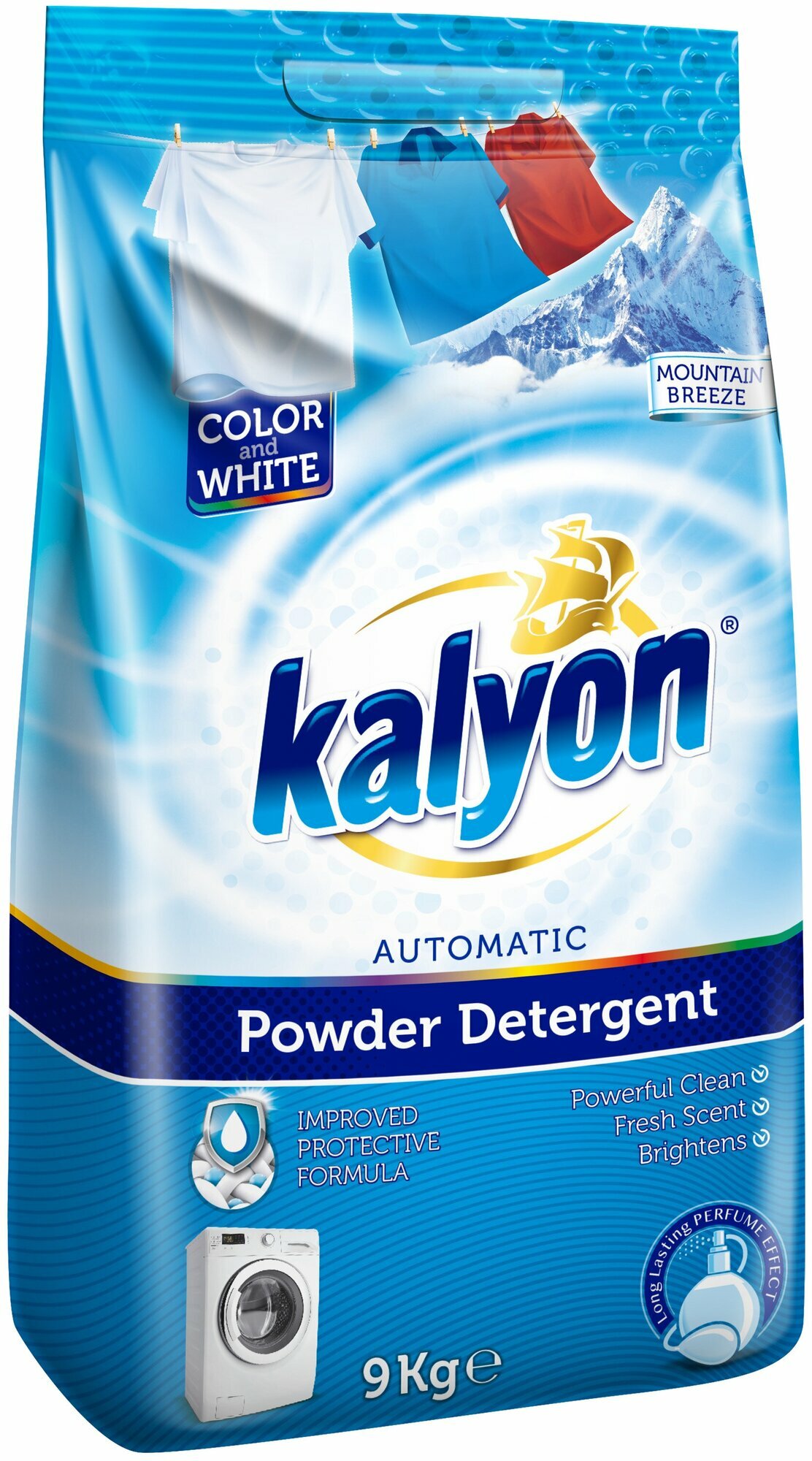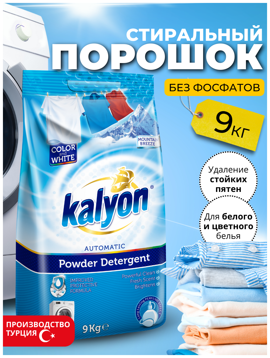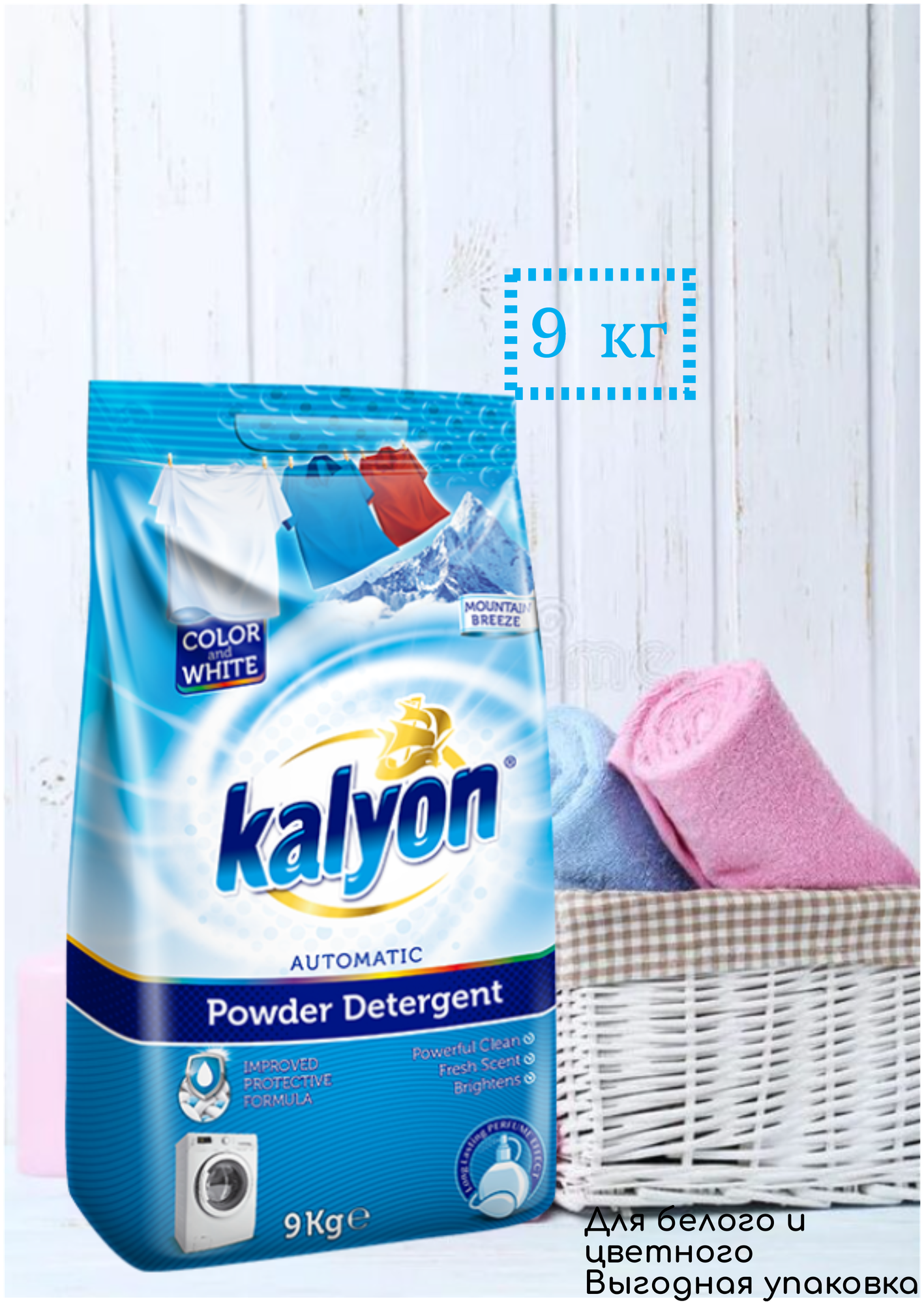 Стиральный порошок 9 кг автомат «KALYON» для стирки цветного, белого и детского белья MOUNTAIN (горная свежесть): сравнение цен, характеристики, фото, актуальное наличие и цены.
