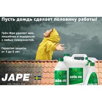 Сфера применения: Грён-фри применяется на всех типах поверхностей, таких как фасады, крыши, каменные дорожки, деревянные настилы, стены, маркизы. Применяется на любых окрашенных и на не обработанных материалах:камень, кирпич, бетон, дерево, штукатурка, этернит, листовое железо, любые кровельные покрытия, пластик, ткани и т.п. Может применяться с профилактической целью для предупреждения роста растений.