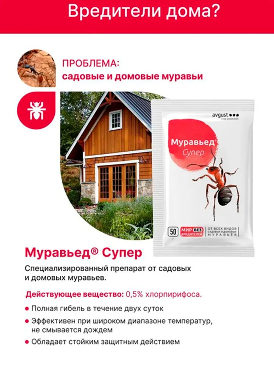 Средство Муравьед Супер Avgust от садовых и домовых муравьев, 240 г