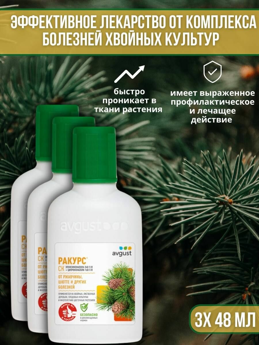 Средство от болезней хвойных растений, лекарство для борьбы с шютте, ржавчиной Ракурс 48 мл, 3 шт: сравнение цен, характеристики, фото, актуальное наличие и цены.