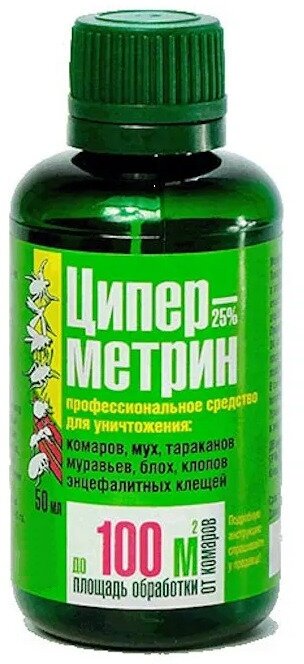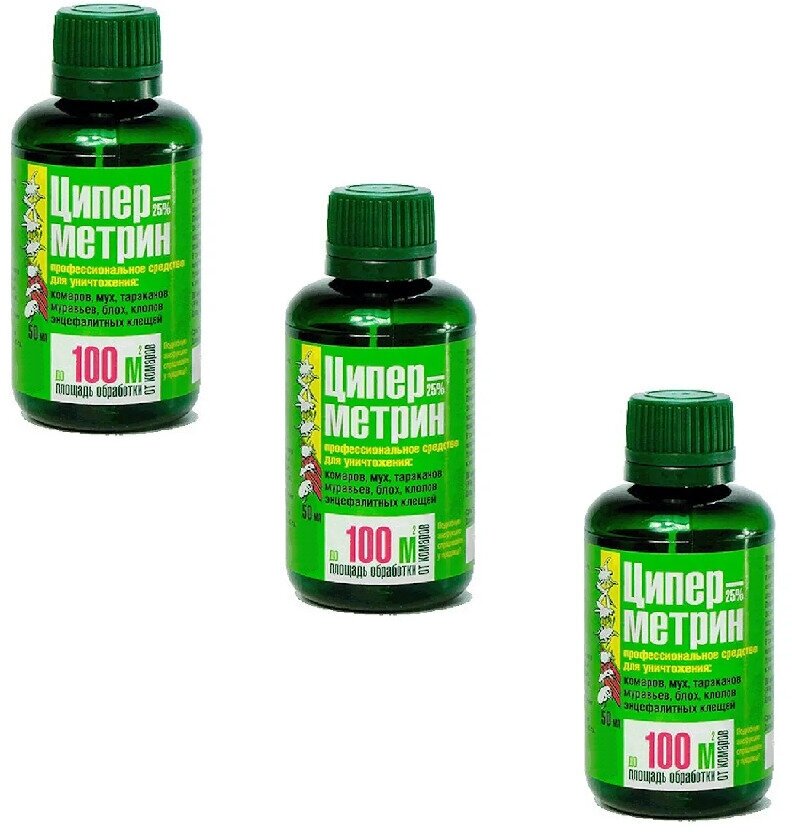 Средство от насекомых «Циперметрин 25» (комплект 3 флакона по 50 мл) от комаров, мух, ос, клещей, тараканов, клопов, блох, муравьев и других летающих насекомых: сравнение цен, характеристики, фото, актуальное наличие и цены.