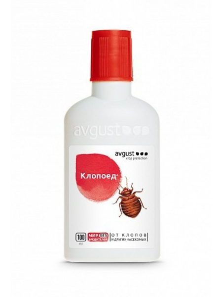 Эффективное супер средство против постельных клопов, домашних муравьев, земляных блох и клещей, мух и личинок комаров. Клопоед часто используют как лекарство от тараканов, моли, вшей. Профессиональная отрава поможет избавиться от паразитов, которые обитают в местах пребывания людей (защита для кровати) или животных. Ловушка концентрат, химия для дома и квартиры имеет ряд особенностей: - скорость начального воздействия два часа, полная гибель вредителей от яда на вторые сутки; - длительное защитное действие 1 месяц; - клопоед не вызывает привыкания; - дезинсекция без резкого сильного запаха. Мощный инсектицид приманка не только для помещений, но и на даче в саду. Инсектицидный уничтожитель клопоед разводят сначала в небольшом количестве воды, а затем добавляют до необходимого. Рабочий препарат хранению не подлежит, то есть использовать его нужно сразу. Водную эмульсию наносят валиком или кистью на площадь обнаружения, скопления или возможного обитания бытовых ползающих и летающих насекомых.
