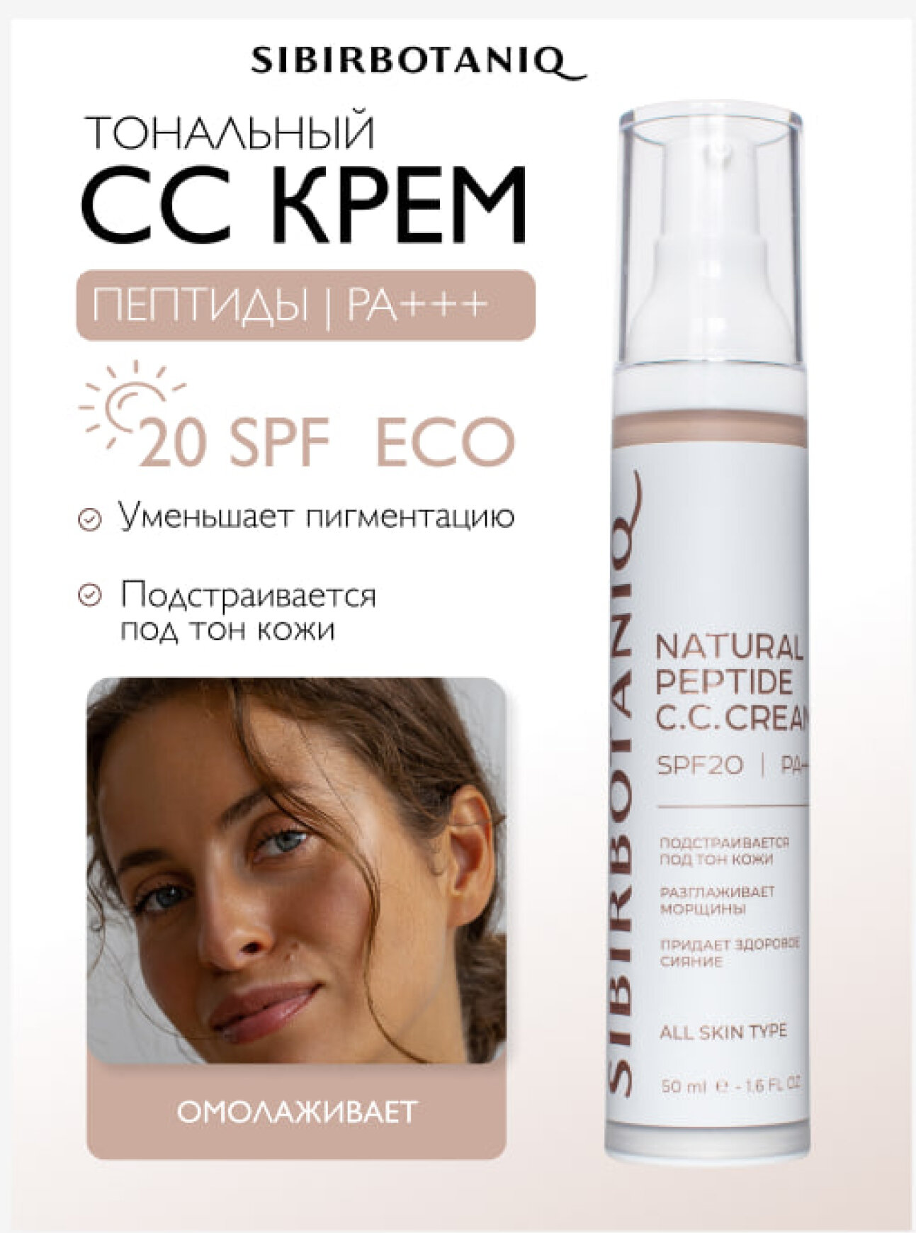 Купить СС крем SIBIRBOTANIQ с пептидами, SPF20, 50мл с доставкой по всей России. СС крем SIBIRBOTANIQ с пептидами, SPF20, 50мл: сравнение цен, характеристики, фото, актуальное наличие и цены.