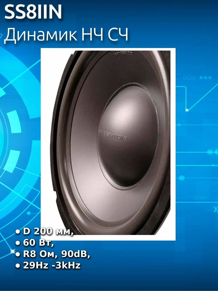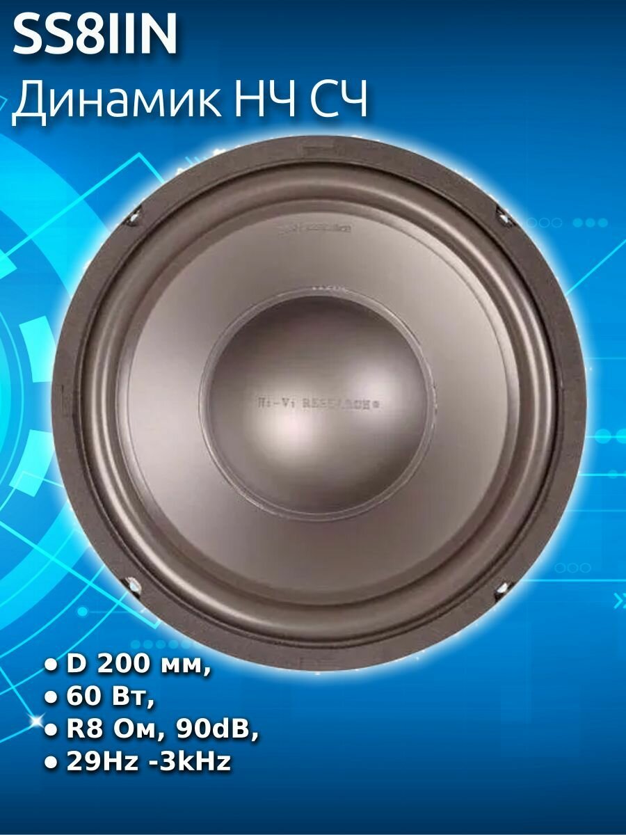 Купить SS8IIN Динамик НЧ СЧ, D 200 мм, 60 Вт, R8 Ом 90dB 29Hz -3kHz с доставкой по всей России. SS8IIN Динамик НЧ СЧ, D 200 мм, 60 Вт, R8 Ом 90dB 29Hz -3kHz: сравнение цен, характеристики, фото, актуальное наличие и цены.