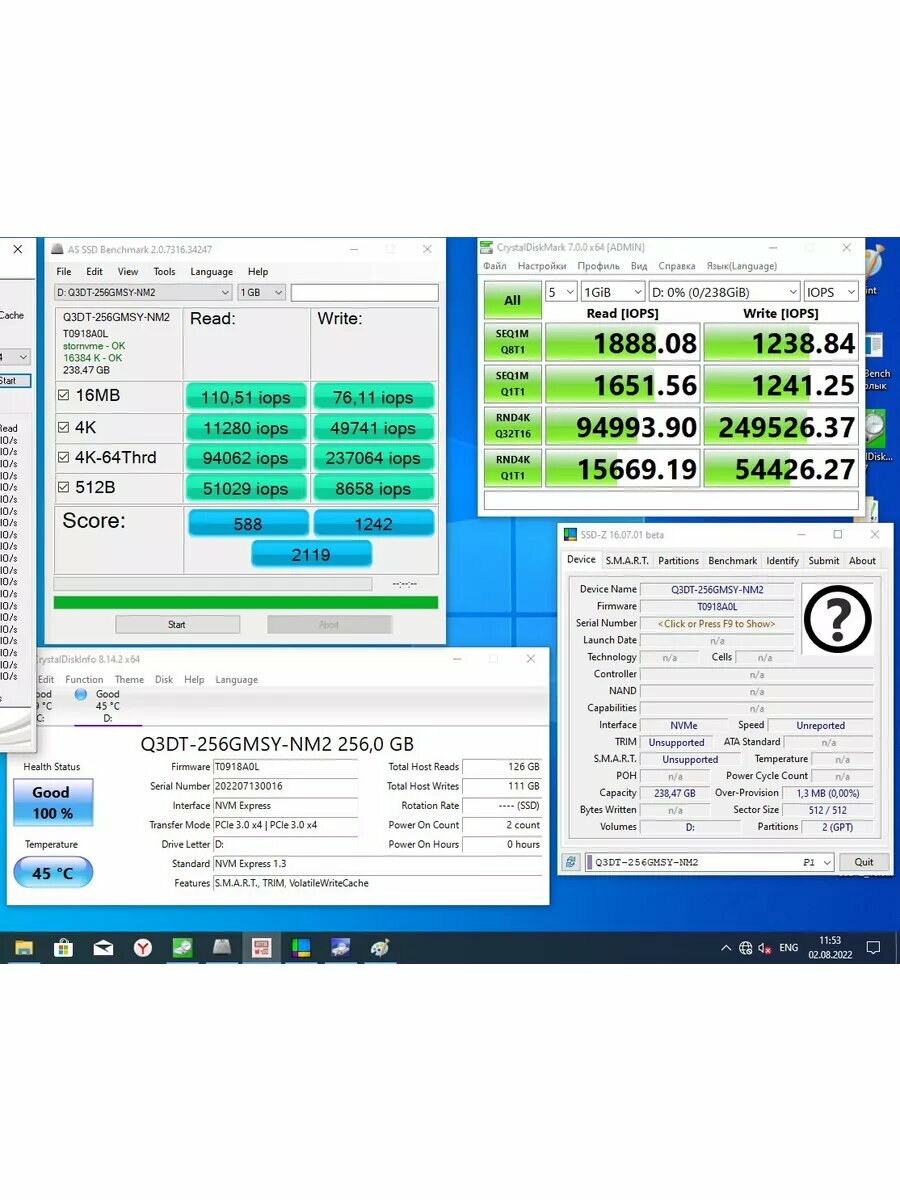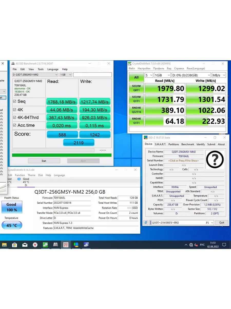 | Суммарное число записываемых байтов (TBW) | 400 ТБ |