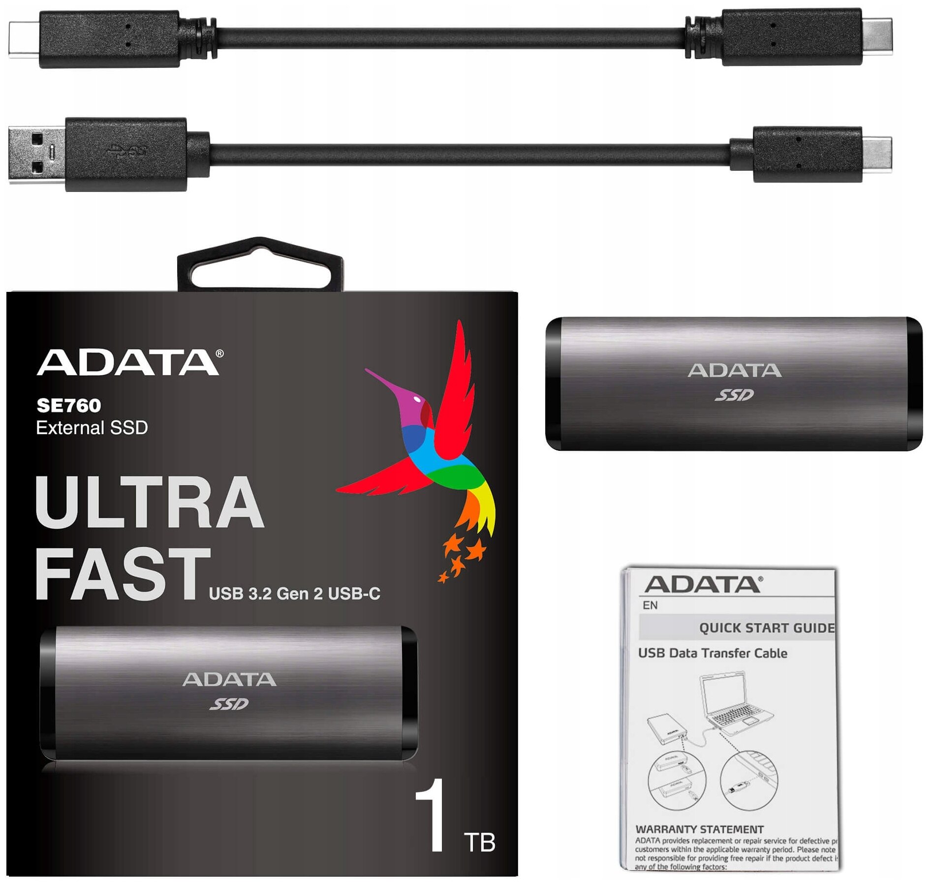 Твердотельный диск 1TB A-DATA SE760, External, USB 3.2 Type-C, [R/W -1000/- MB/s] 3D-NAND, титановый: сравнение цен, характеристики, фото, актуальное наличие и цены.