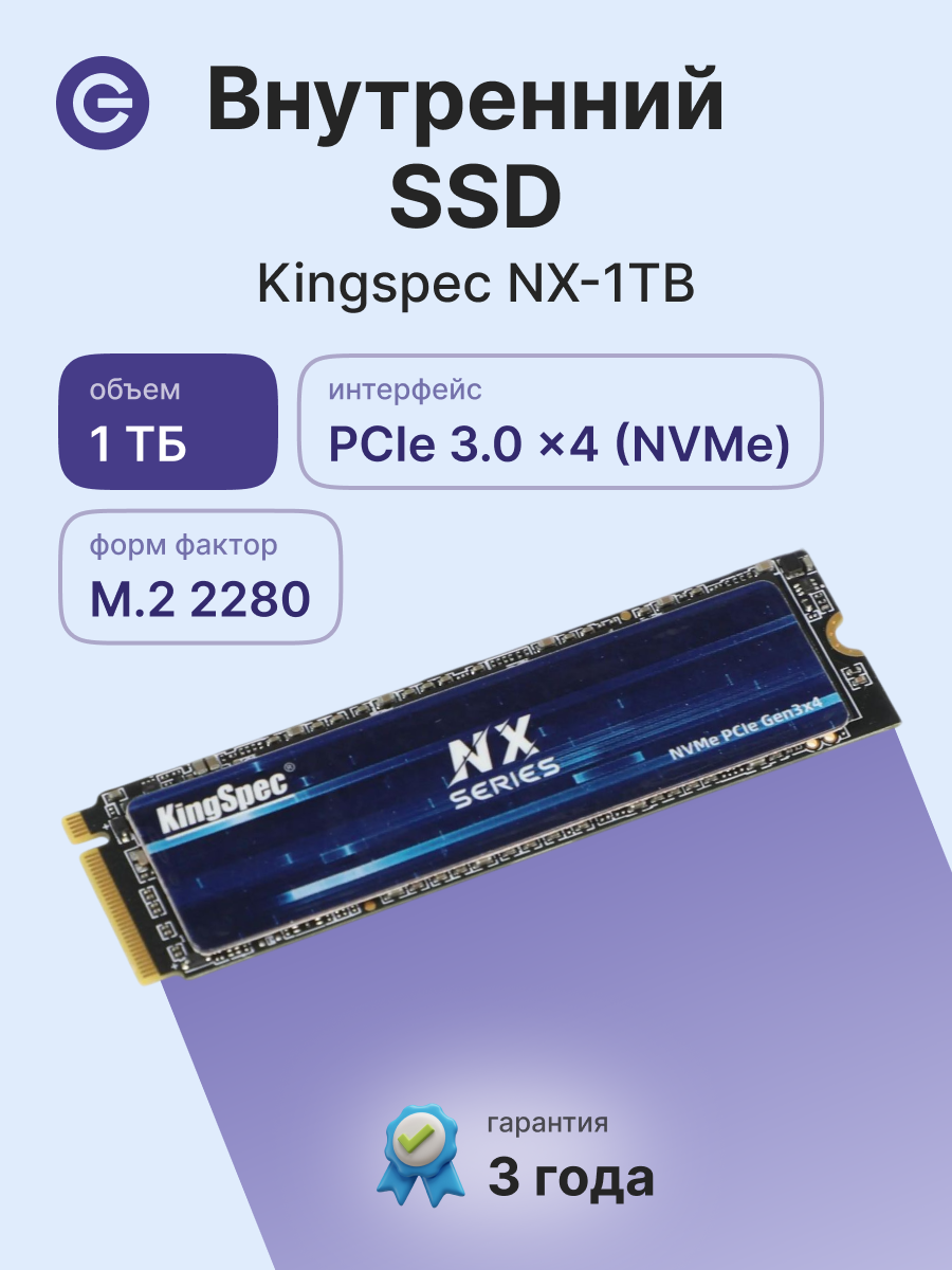 Внутренний SSD диск KINGSPEC 1TB, M.2, NVMe, PCIe 3.0 (NX-1TB 2280): сравнение цен, характеристики, фото, актуальное наличие и цены.