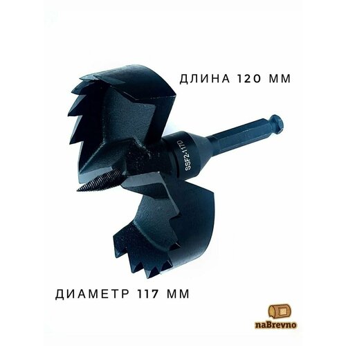 Купить SSF2-117D naBrevno. Самоподающее (винтовое) сверло Форстнера 117 мм по дереву, двухзаходное, длина 120 мм, 7/16 HEX с доставкой по всей России.