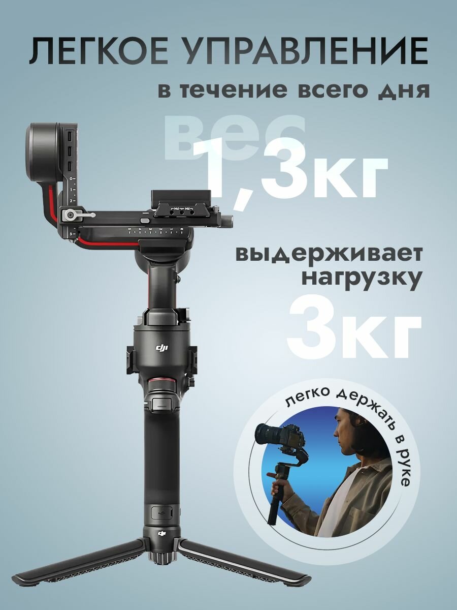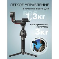 Описание DJI RS 3 Combo Готов вместе с тобой! DJI RS 3 способен одинаково обеспечить детальную, высококлассную съемку как авторам-одиночкам, так и независимым творческим группам. Вы будете поражены его легкостью и элегантностью, а также возможностями профессиональной стабилизации и эффективного управления. Это гарантия большой свободы в творчестве и безграничных возможностей. Если вы готовы, то DJI RS и подавно! Начни прямо сейчас! Все дело в скорости Быстросъемные пластины Благодаря двухслойным быстросъемным пластинам теперь установка камеры на стабилизатор RS 3 стала быстрой и удобной. Нет необходимости снова выполнять балансировку стабилизатора после установки новой батареи или добавления носителя. Недавно добавленная ручка тонкой настройки на оси наклона позволяет камере скользить вперед или назад с точностью до миллиметра. Это значительно упрощает точную балансировку после смены объектива. Автоматическая фиксация осей Благодаря своей конструкции у RS 3 есть возможность начать работу за считанные секунды. Если ранее стабилизатор был выключен, то вам достаточно нажать и удержать кнопку питания, чтобы разблокировать и расширить все 3 оси. Это займет пару секунд, и вот вы и ваш подвес уже готовы к съемке. Чтобы заблокировать оси и перевести их в спящий режим для транспортировки или хранения, достаточно один раз нажать ту же кнопку питания. А чтобы автоматически сложить и заблокировать повес, просто нажмите и удержите кнопку питания. Bluetooth-управление затвором В RS 3 теперь появилась новая функция - двойной режим Bluetooth, с помощью которого оператор может управлять спуском затвора беспроводным методом [1]. Это помогает экономить драгоценное время во время работы. Выполните первоначальное сопряжение по Bluetooth, чтобы можно было вести видео- и фотосъемку просто нажимая кнопку записи на подвесе. Если сопряжение сделано, то повторное подключение будет автоматическим, а кабель управления камерой не потребуется. Невероятная четкость Стабилизация профессионального уровня Оптимальный коэффициент массы и полезной нагрузки Масса всего устройства (вместе с батареей, стабилизатором и быстросъемными пластинами) не превышает 1,3 кг. То есть, вы сможете держать RS 3 без труда одной рукой. При этом стабилизатор имеет полезную нагрузку до 3 кг, что позволяет ему работать с большинством камер, в том числе Sony A7S3 или Canon R5 с объективом 24-70 мм F2,8. Canon R5 RF 24-70 mm F2.8 Sony FX3 FE 24-70 mm F2.8 Sony A7M4 FE 24-70 mm F2.8 Nikon Z6II Z 24-70 mm F2.8 Fujifilm X-T4 X 16-55 mm F2.8 Panasonic GH6 M4/3 12-60 mm F2.8-4.0 Стабилизация с помощью алгоритма нового поколения RS 3 получил алгоритм стабилизации третьего поколения, значительно улучшающий стабилизацию при съемке в любой ситуации. Тестирование в лабораторных условиях продемонстрировало улучшение стабилизации на 20% по сравнению с предшественником. Теперь процесс съемки с низкого ракурса, съемка в движении или в иных сценариях будет намного удобнее и проще. Съемка стала еще более плавной Любой оператор желает, чтобы кадры получались плавными и четкими. Для этого в RS 3 имеется режим SuperSmooth. Активируйте его, и RS 3 с помощью увеличения крутящего момента привода будет делать кадры более стабильными и плавными. Это будет даже тогда, когда вы ведете съемку динамичных сцен: спортивных состязаний или экстремальных приключений. Сенсорный экран OLED 1,8 дюйма У RSC 2 дисплей был черно-белым, в то в