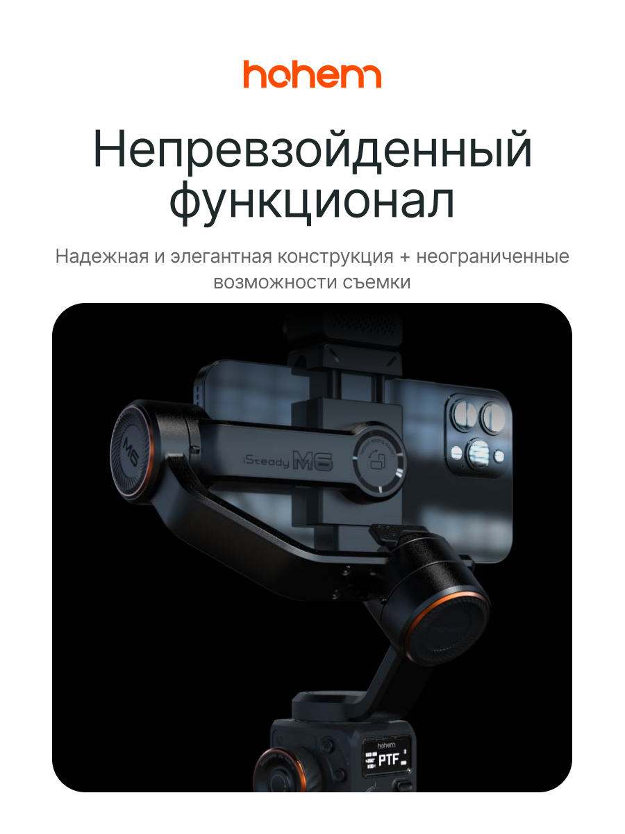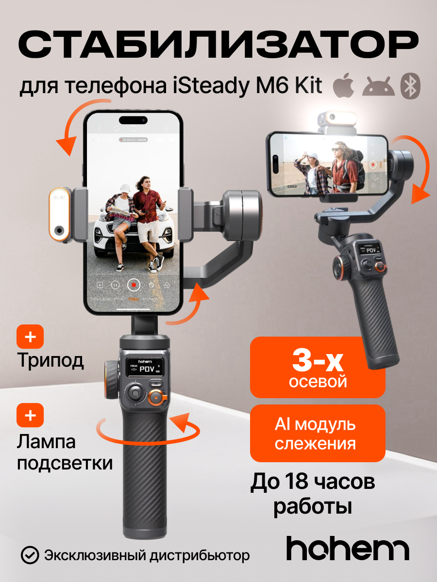 Стабилизатор Hohem iSteady M6 kit, для смартфонов, трехосевой, магнитный свет, черный: сравнение цен, характеристики, фото, актуальное наличие и цены.