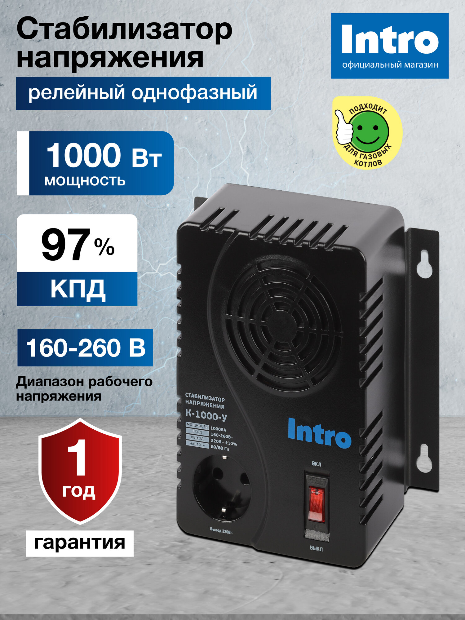 Стабилизатор напряжения 220в Intro К-1000-У однофазный релейный настенный компактный для газового котла 1000ВА, 160-260В: сравнение цен, характеристики, фото, актуальное наличие и цены.