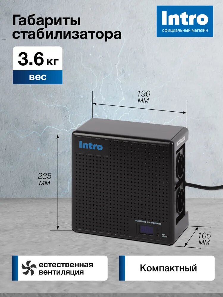 Стабилизатор напряжения 220в Intro К-2000-УЦ компактный универсальный 140-260В/220В: сравнение цен, характеристики, фото, актуальное наличие и цены.