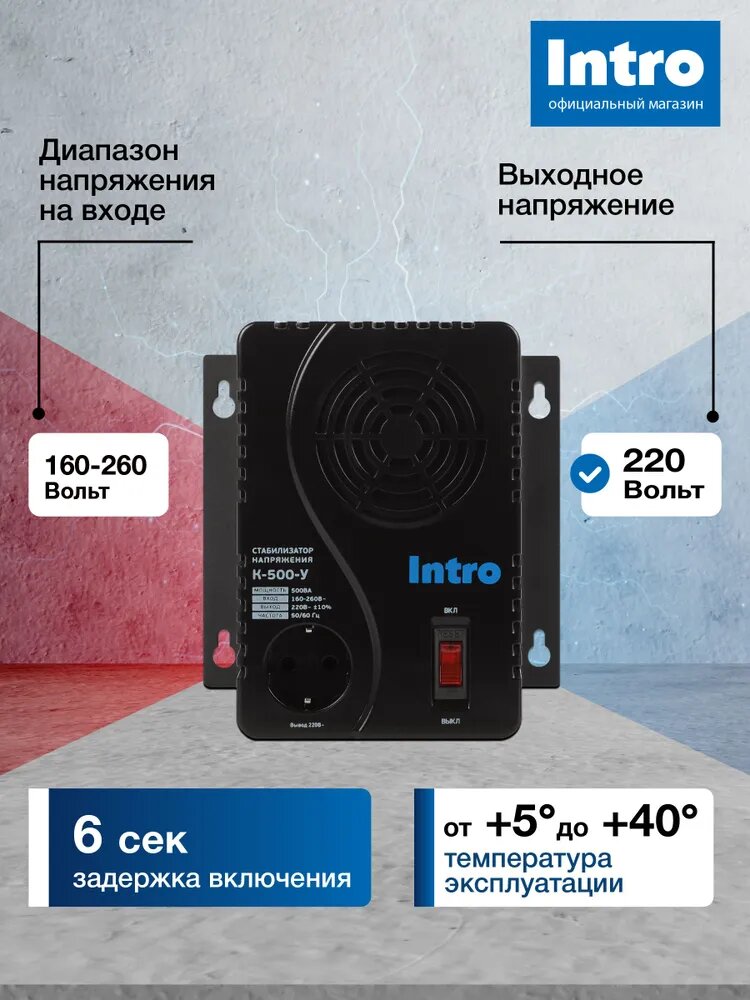 Купить Стабилизатор напряжения 220в Intro К-500-У однофазный релейный компактный для газового котла 500ВА, 160-260В с доставкой по всей России. Стабилизатор напряжения 220в Intro К-500-У однофазный релейный компактный для газового котла 500ВА, 160-260В: сравнение цен, характеристики, фото, актуальное наличие и цены.