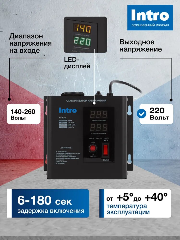Стабилизатор напряжения 220в Intro Н-500 однофазный релейный настенный для газового котла 500ВА, 140-260В: сравнение цен, характеристики, фото, актуальное наличие и цены.