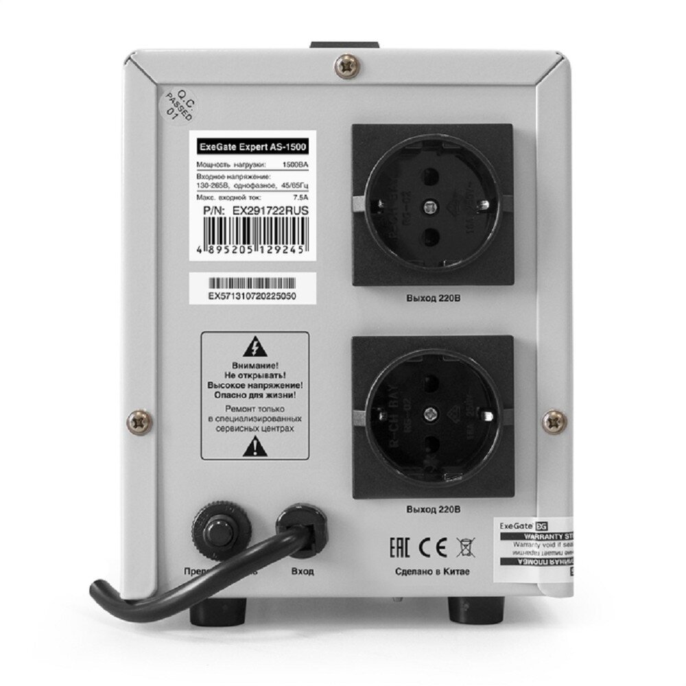 Стабилизатор напряжения Exegate EX291722RUS Стабилизатор напряжения ExeGate Expert AS-1500 (1500ВА, вход 140.260В, двойная цифр. индикация вход/вых. напряжения, выход 220В±8%, КПД 98%, 5 уровней защиты, задержка, метал. ко: сравнение цен, характеристики, фото, актуальное наличие и цены.
