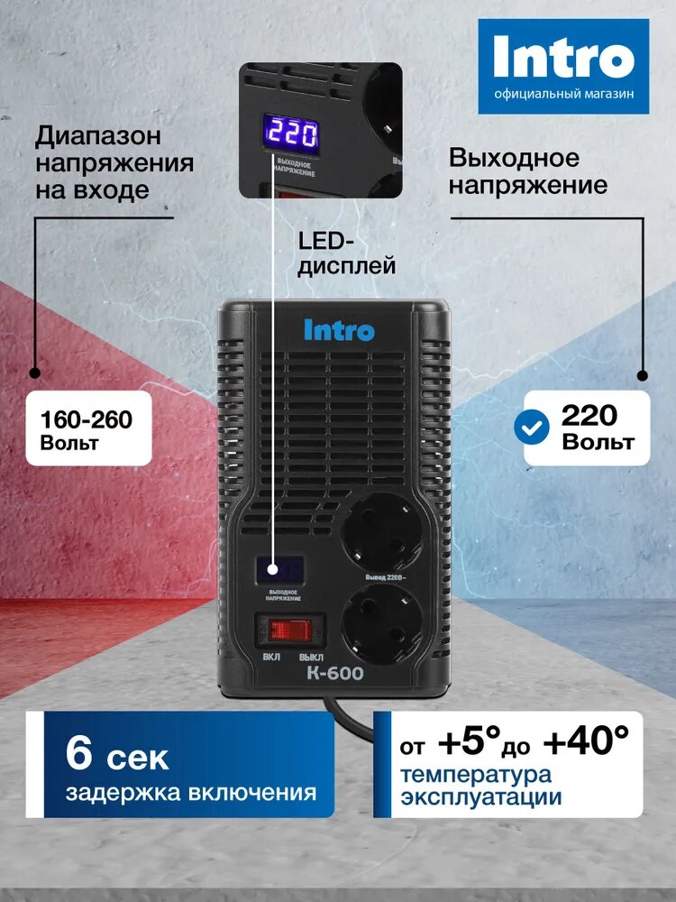 Стабилизатор напряжения INTRO, электромеханический, для газового котла, 600Вт: сравнение цен, характеристики, фото, актуальное наличие и цены.