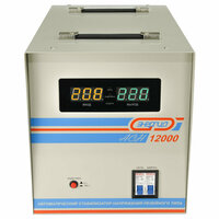 Стабилизатор напряжения Энергия АСН 12000 (+/- 8%) является релейным. Его работа осуществляется за счет ступенчатого регулирования напряжения путем переключения отводов силового автотрансформатора с помощью электромеханических силовых реле. Использование интеллектуальной системы защиты и блока самотестирования сделало данный стабилизатор надёжным и позволило его эксплуатировать в течение длительного срока. Мощность его достигает 12 кВА при всей его компактности. Данный стабилизатор позволяет автоматически поддерживать выходное напряжение в диапазоне 207-233 В. А используемый микропроцессор обеспечивает высокую скорость и плавность регулировки напряжения, что в 2-4 раза выше, чем у других стабилизаторов данного типа.