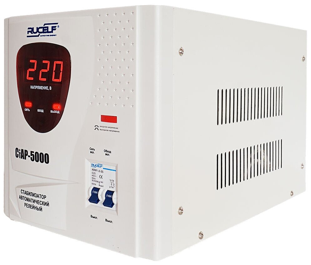 Купить Стабилизатор напряжения однофазный RUCELF СтАР-5000 белый 5000 ВА 3500 Вт 280 мм 410 мм 260 мм с доставкой по всей России. Стабилизатор напряжения однофазный RUCELF СтАР-5000 белый 5000 ВА 3500 Вт 280 мм 410 мм 260 мм: сравнение цен, характеристики, фото, актуальное наличие и цены.