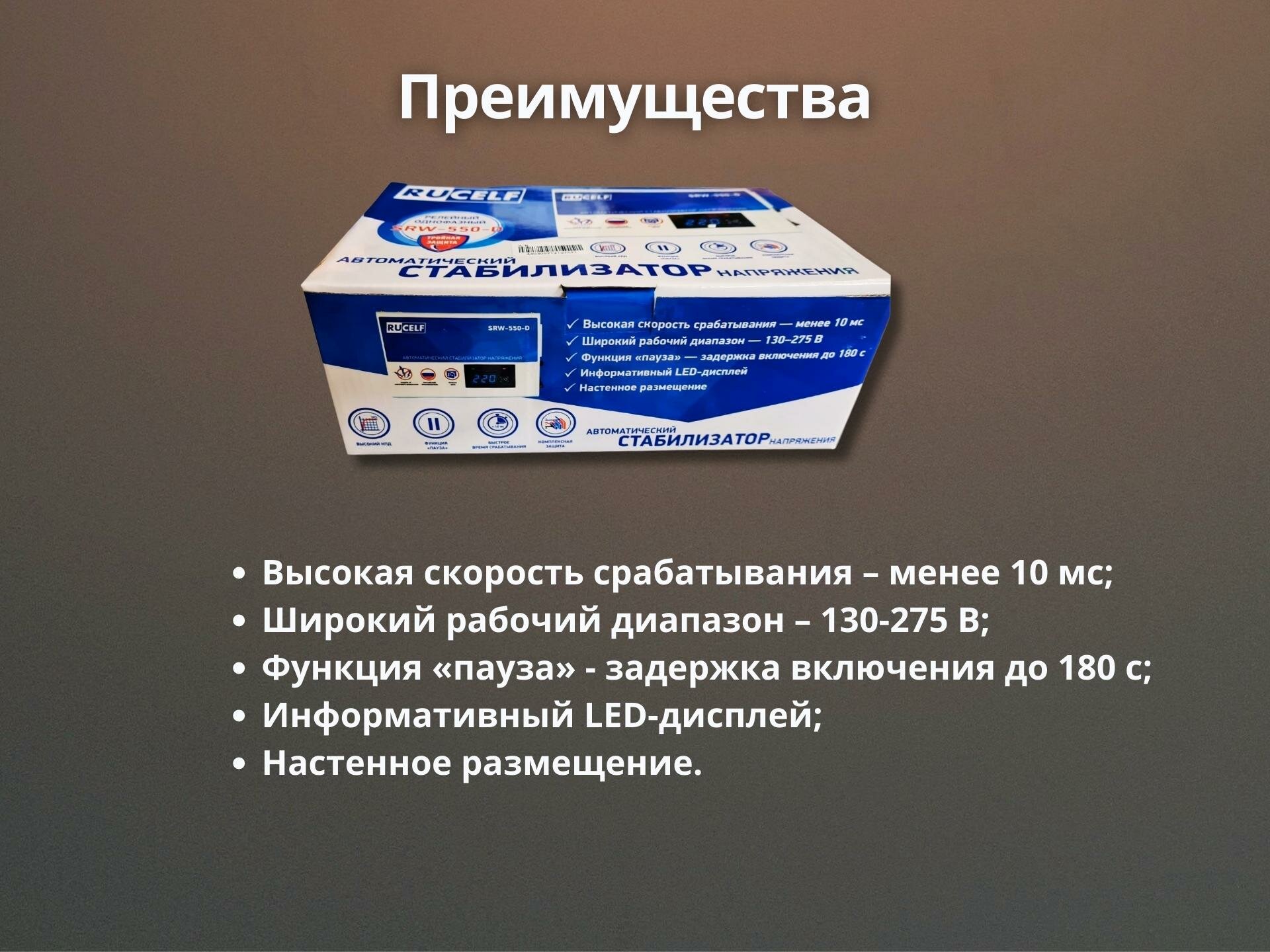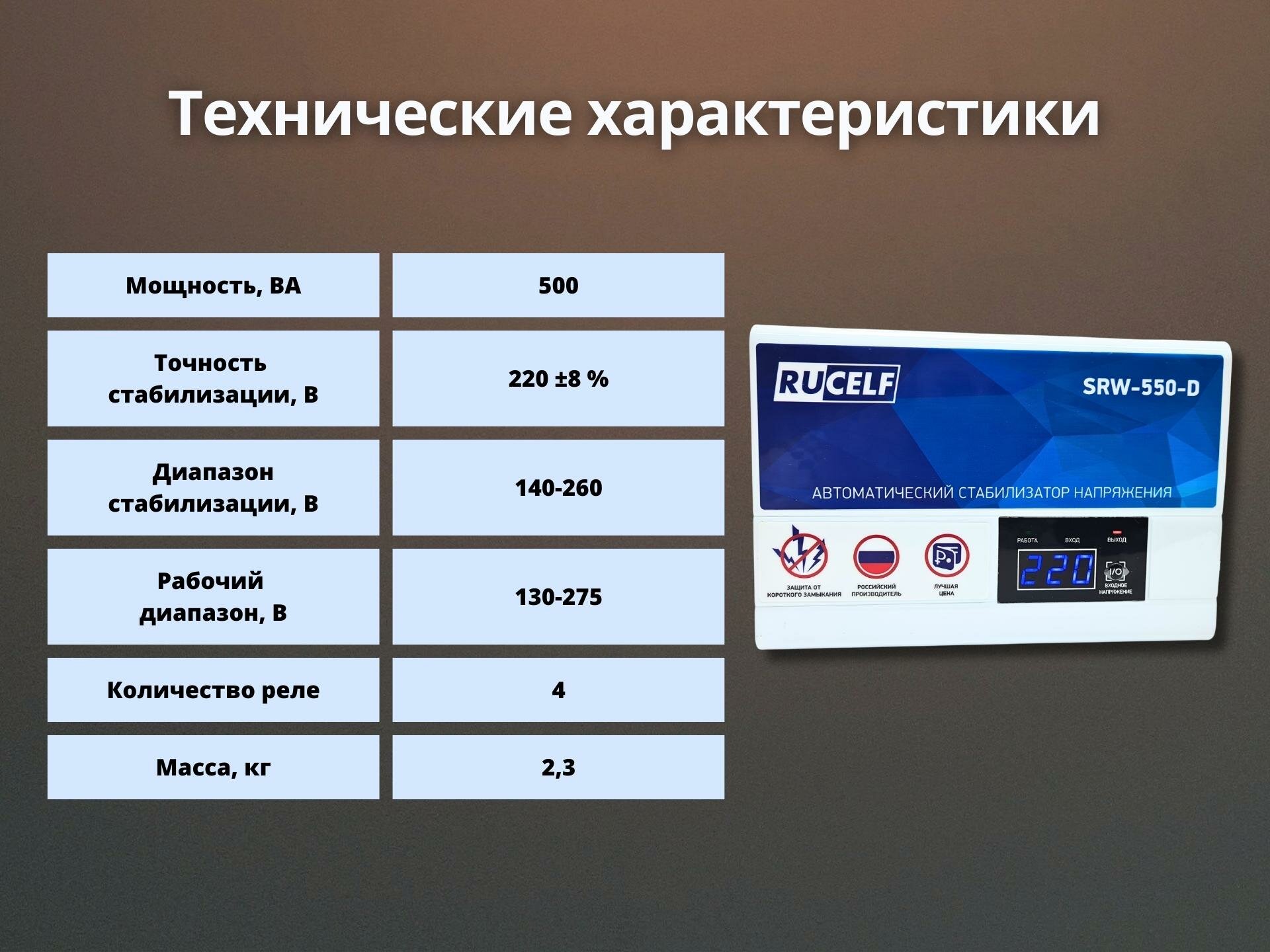 Стабилизатор напряжения однофазный релейный настенный Rucelf SRW -550-D 500 ВА 130-275 В: сравнение цен, характеристики, фото, актуальное наличие и цены.